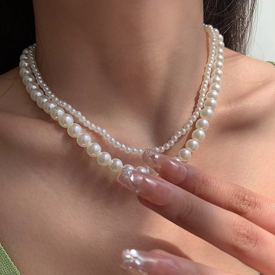 Cross-Border Large and Small Pearl Necklace Accessories Women's Niche Summer Versatile High-End Clavicle Chain 2024 New Silver Necklace