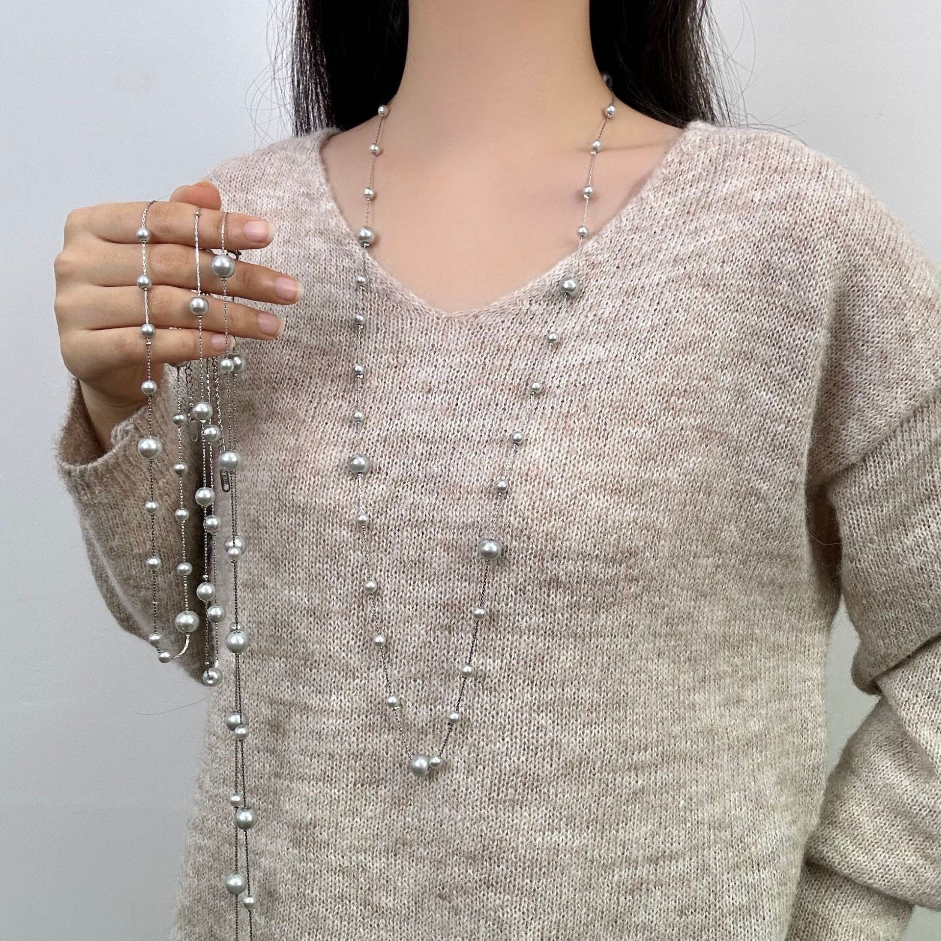 Long Starry Imitation Gray Pearl Necklace Women's 2025 New Autumn and Winter Sweater Chain High-End Accessible Luxury Niche