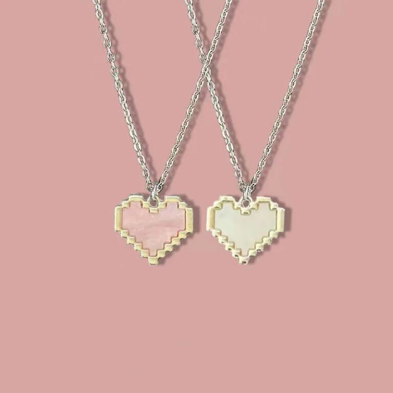 Pink Mosaic Heart Necklace Sweet Mori Girl's Heart Pink Cute Best Friend Love Necklace All-match