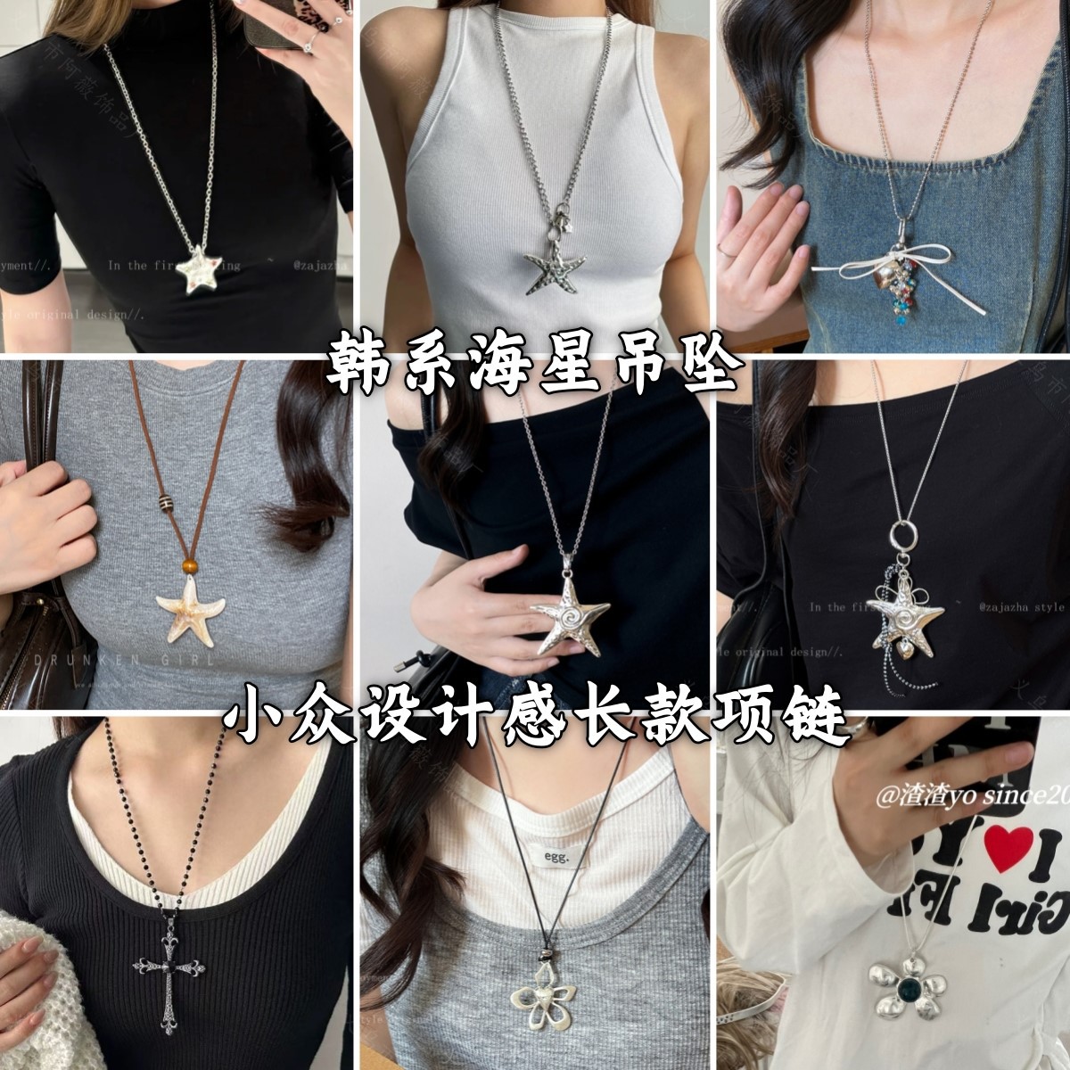 Starfish Flower Heart Necklace Women's Niche Design Long Clavicle Chain Y2K Halter Neck Chain Pendant Accessories