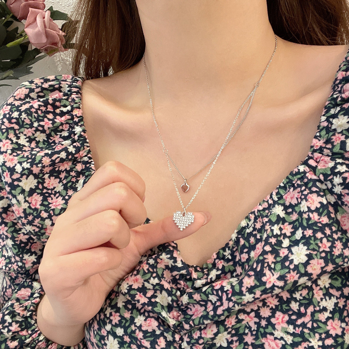 Diamond-embedded double-layer drop-shaped pearl necklace Chanel style French style elegant clavicle chain high-end fashion elegant necklace
