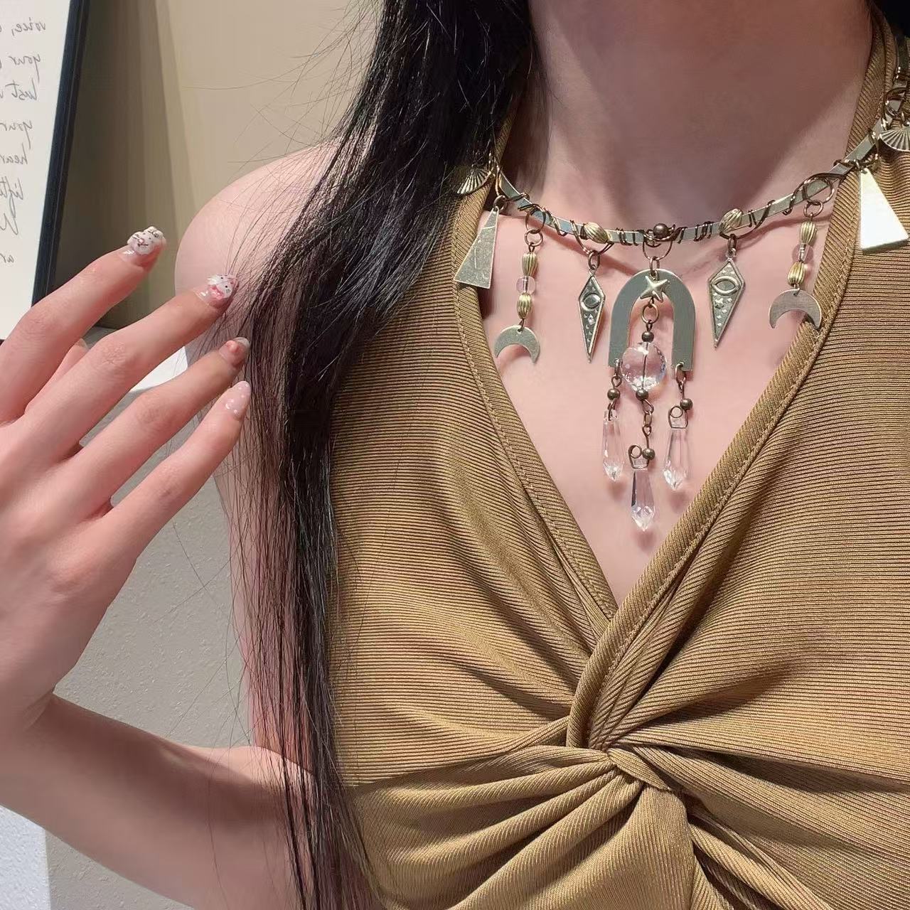 European and American Cross-Border Jewelry Multi-Element Pendant Necklace Retro Golden Goddess Elegant Niche High-End Design Necklace