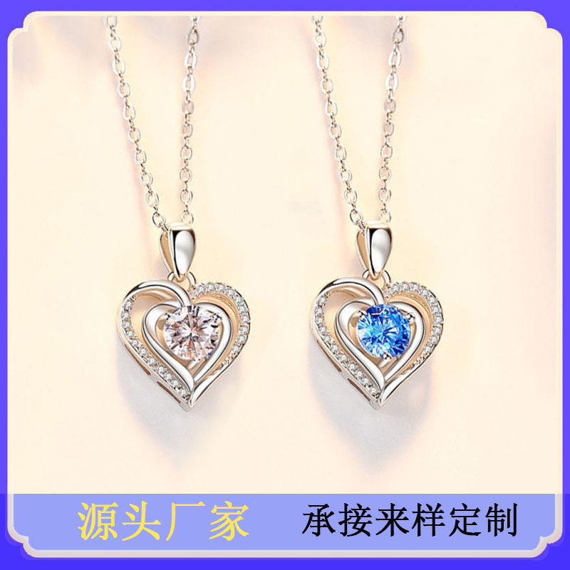 Internet Celebrity Korean Style Simple Temperament Ocean Heart Women's Heart-shaped All-match Necklace Simple Love Clavicle Chain Couple Pendant