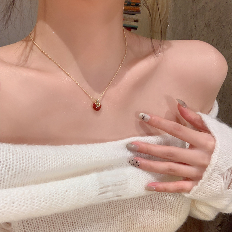 Summer Red Alloy Love Necklace Jewelry Women's Light Luxury Niche High-end Stacked Pendant Collarbone Chain Accessories