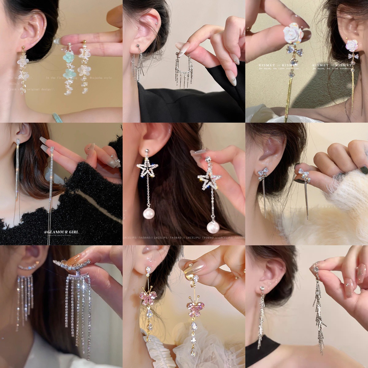 Rich and noble daughter feeling ~ light luxury fashion flash diamond long tassel earrings exquisite style elegant temperament versatile earrings