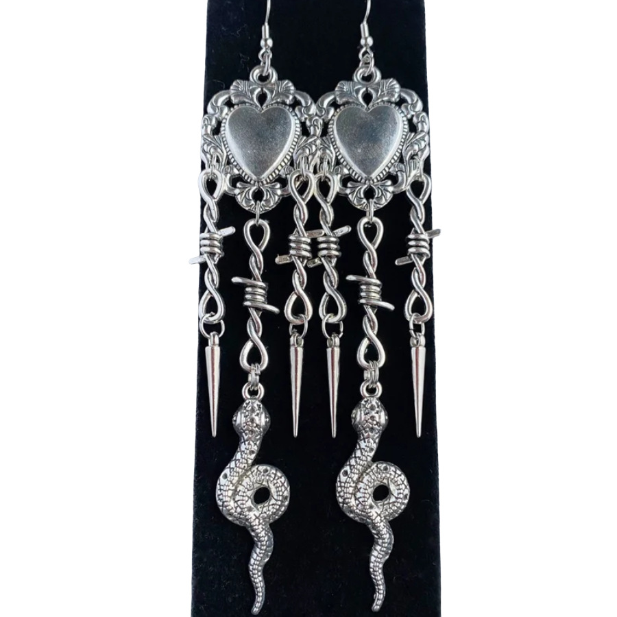 European and American Gothic Earrings, Wire Snake, Trendy Hip-Hop Gothic Heart-Shaped and Snake Cross-Border New Fashion Women's Accessories