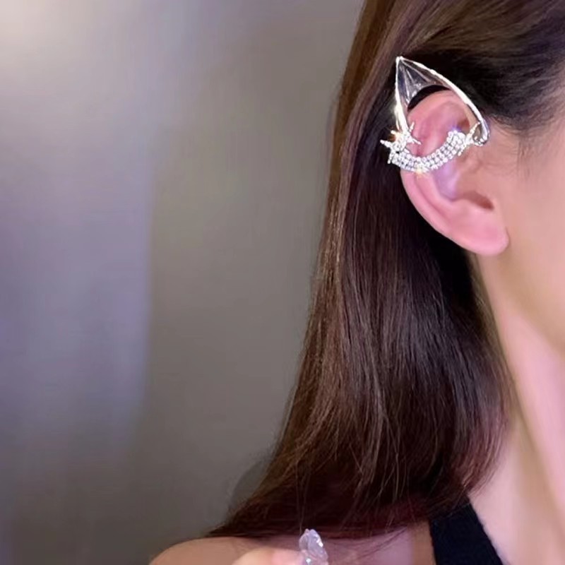Niche cold style design new diamond-embedded elf ear clip without pierced ear clip fashionable temperament earrings for women