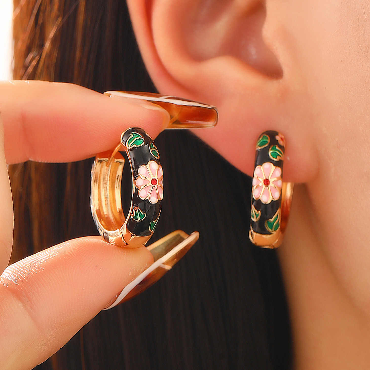 Chinese Style Retro Circle Ear Buckle Ear Ring Colorful Flower Oil Dropping New Chinese Earrings Southeast Asian Earrings for Women