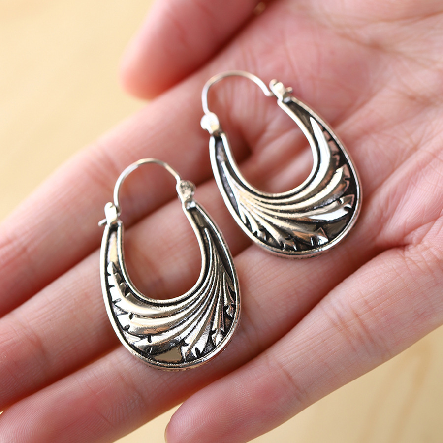 European and American Niche Style Retro Carved U-Shaped Hoop Earrings for Women, Fashionable and Creative Cross-Border Hot-Selling Earrings