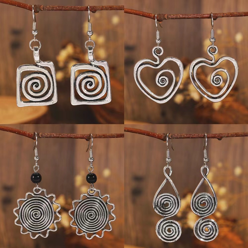 Retro Bohemian Ethnic Style Oval Spiral Old Earrings Hollow Pattern Pendant Earrings Simple Wholesale