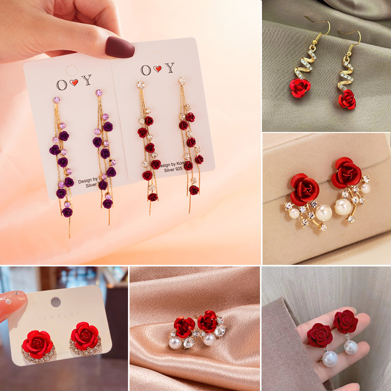 Cross-border Hot Selling Personalized Flower Rose Long Earrings Red Rose Elegant Women Tassel Earrings