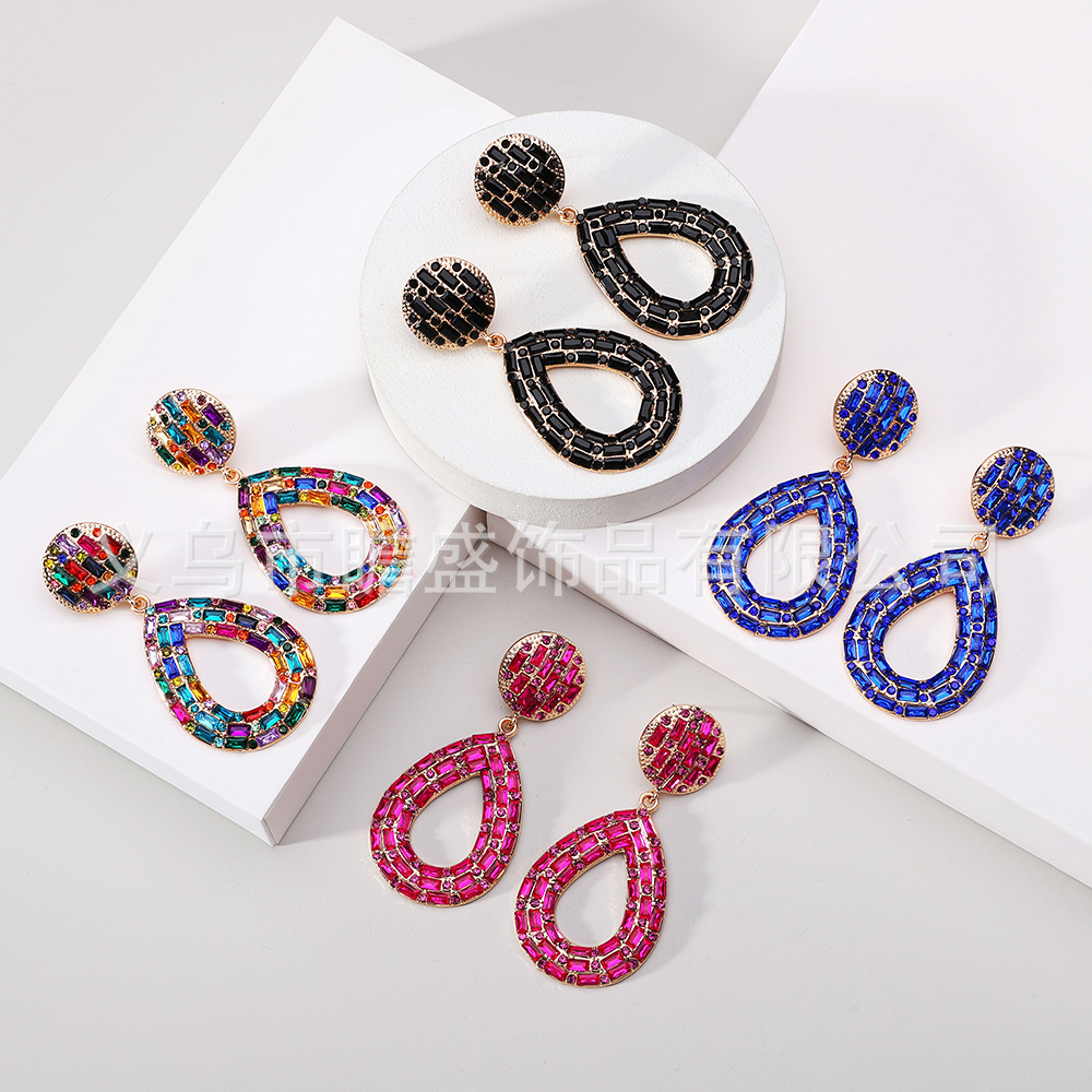 Retro Simple Geometric Diamond-Encrusted Drop-Shaped Love Trapezoid Earrings European and American Exaggerated High-End Earrings Wholesale