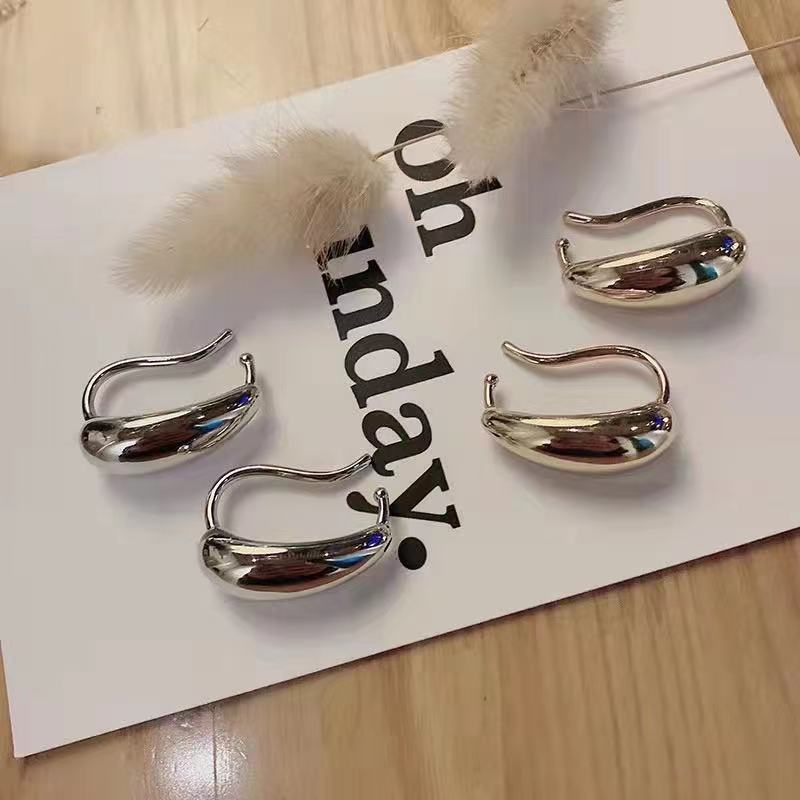 2021 New Water Drop Shape Glossy Ear Bone Clip Korean Simple Elegant High Earrings All-match Trendy Women