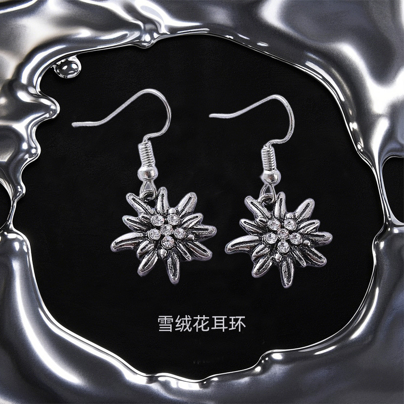 Cross-Border Alloy Edelweiss Earrings for Women, High-End, Exquisite, Fashionable Electroplated Accessories, Niche Oktoberfest Light Luxury Earrings