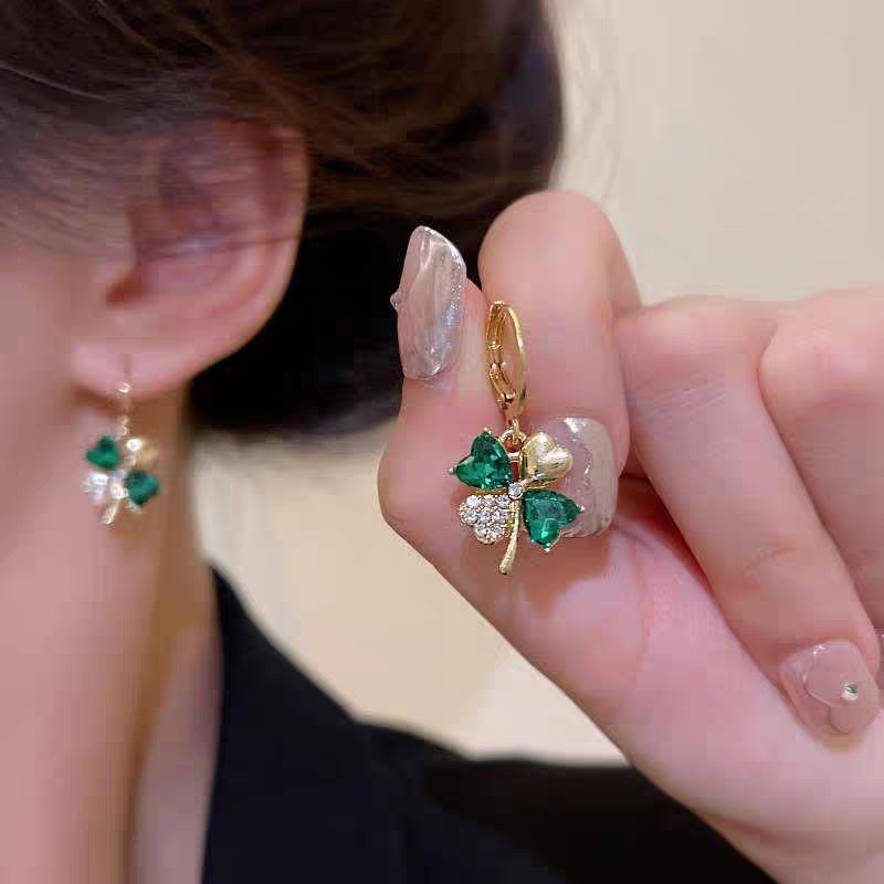 Ready Stock Korean Niche Unique Four-Leaf Clover Earrings for Summer, Accessible Luxury, High-End Elegant, New Trendy Earrings