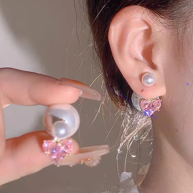 Light luxury high-grade pink lovely pearl earrings 2023 new trendy female online celebrity design temperament all-match earrings