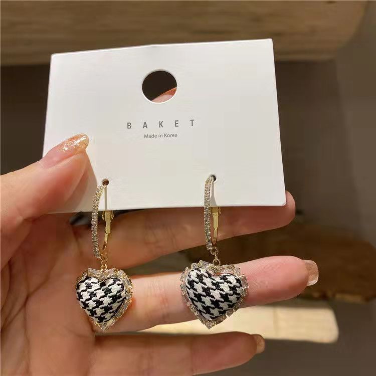 Korean Retro Houndstooth Love Earrings Niche Design Advanced Sense Elegant Earrings 2021 New Fashion Earrings