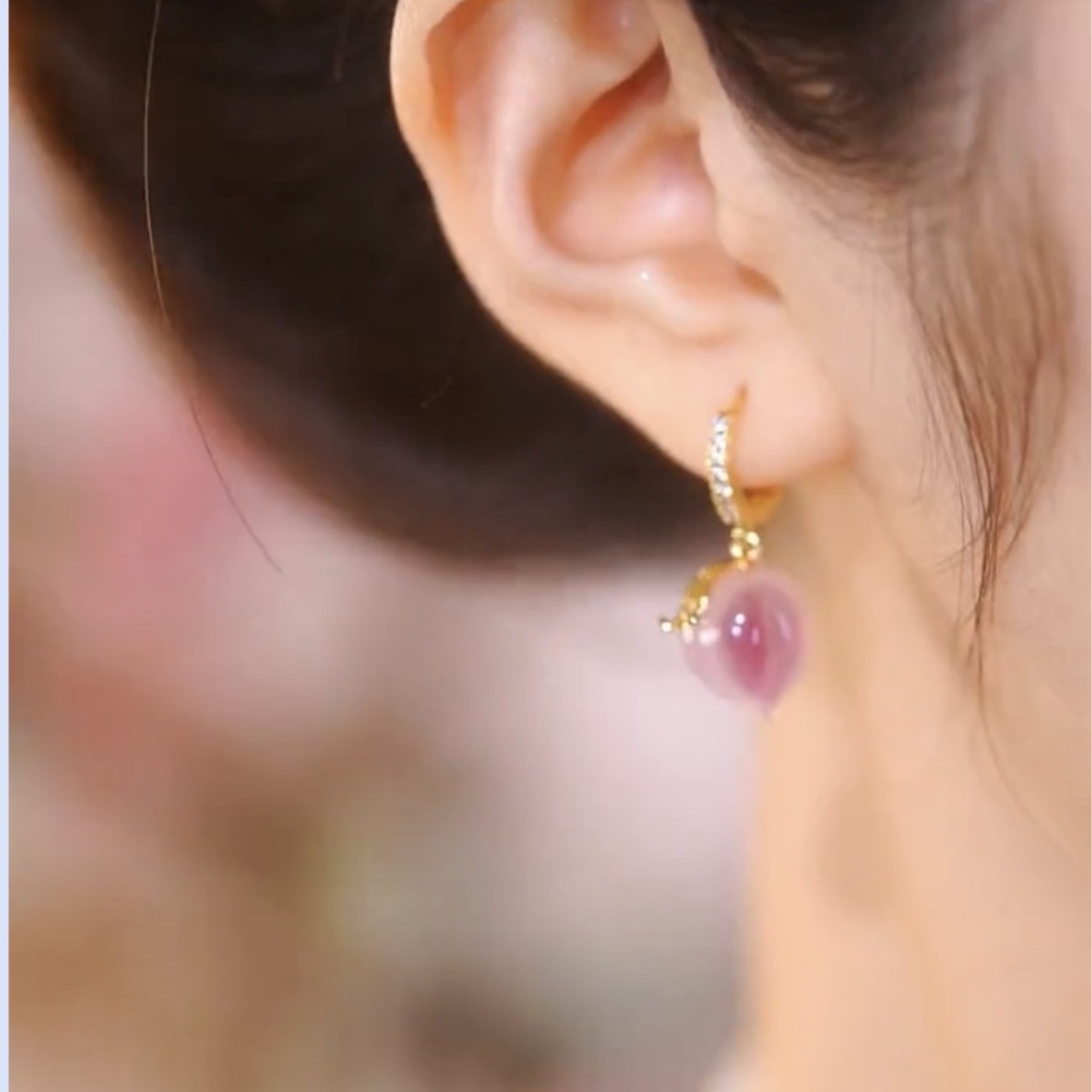 Pink Peach Earrings Women's Niche Design Exquisite Ear Buckle 2024 New Fashionable Summer Light Luxury Peach Heart Earrings