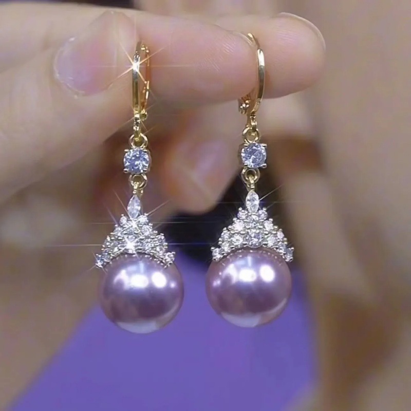High-End Design Micro-Embellished Purple Pearl Earrings 2024 New Trendy Korean Popular Elegant Earrings for Women
