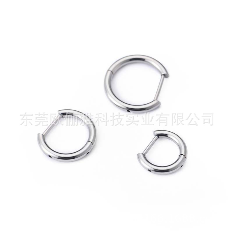 Cross-Border Hot-Selling F136 Titanium Alloy Earrings D-Shaped Plain Ring Straight Needle Side Opening 0.9 Tooth Mouth G23 Piercing Jewelry