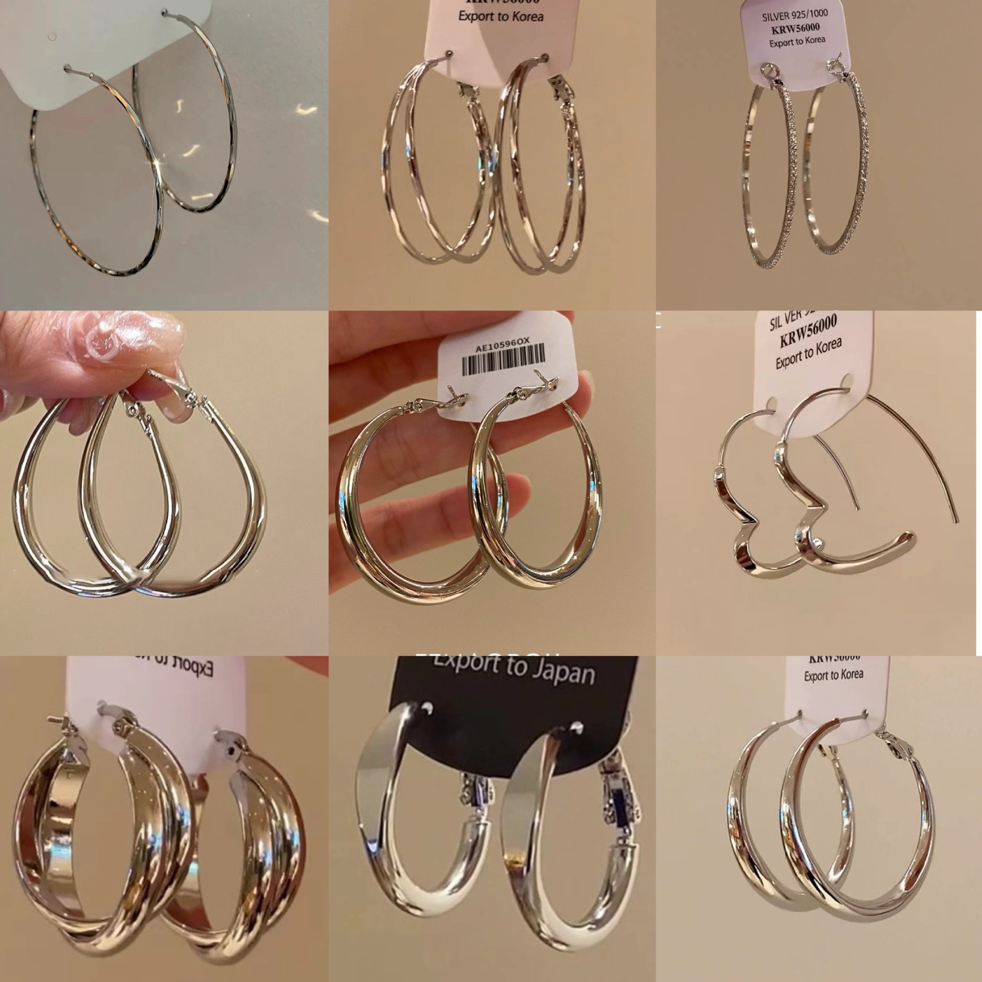 European and American style metal earring square geometric earrings vintage pearl earrings Hepburn style earrings suit 6-piece set