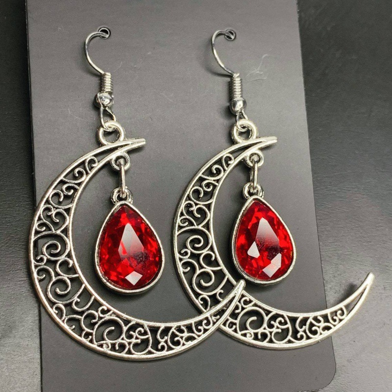 European and American Fashion Creative Gothic Exaggerated Earrings Blood Moon Blood Drops Moon Diamond Gas Jewelry Ladies Jewelry Earrings