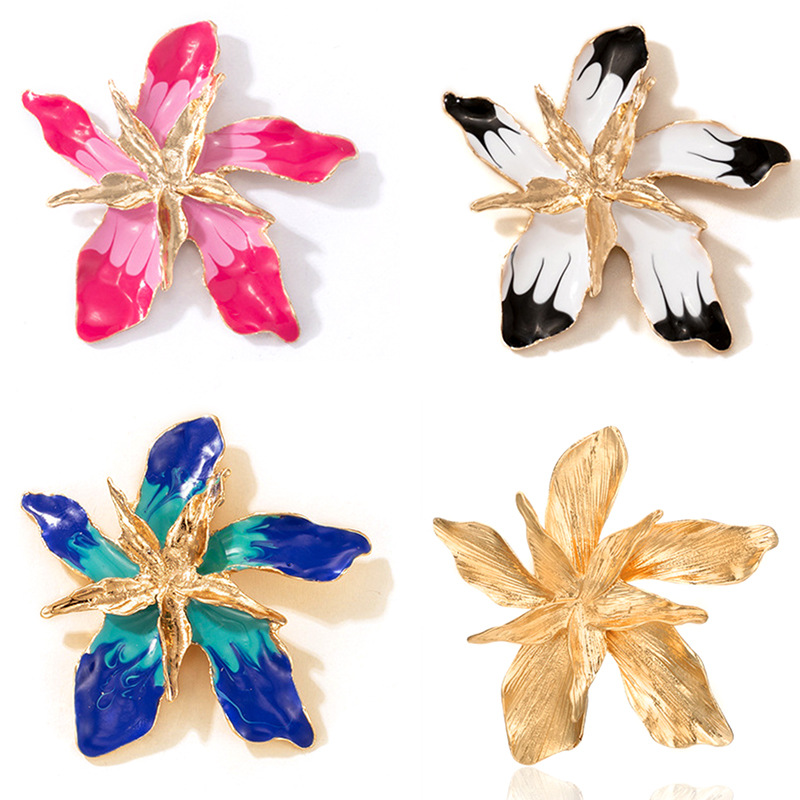 New Cross-Border Trendy Jewelry, European and American Style, Exaggerated Floral Earrings, Multi-Layered Alloy Oil-Drip Flower Earrings, Exquisite