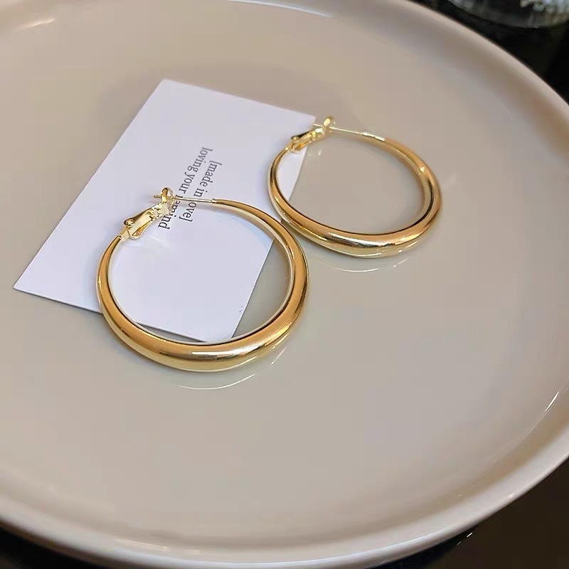 Simple plain circle earrings European and American metal fashion Joker earrings women's high-end sense personality trend earrings wholesale
