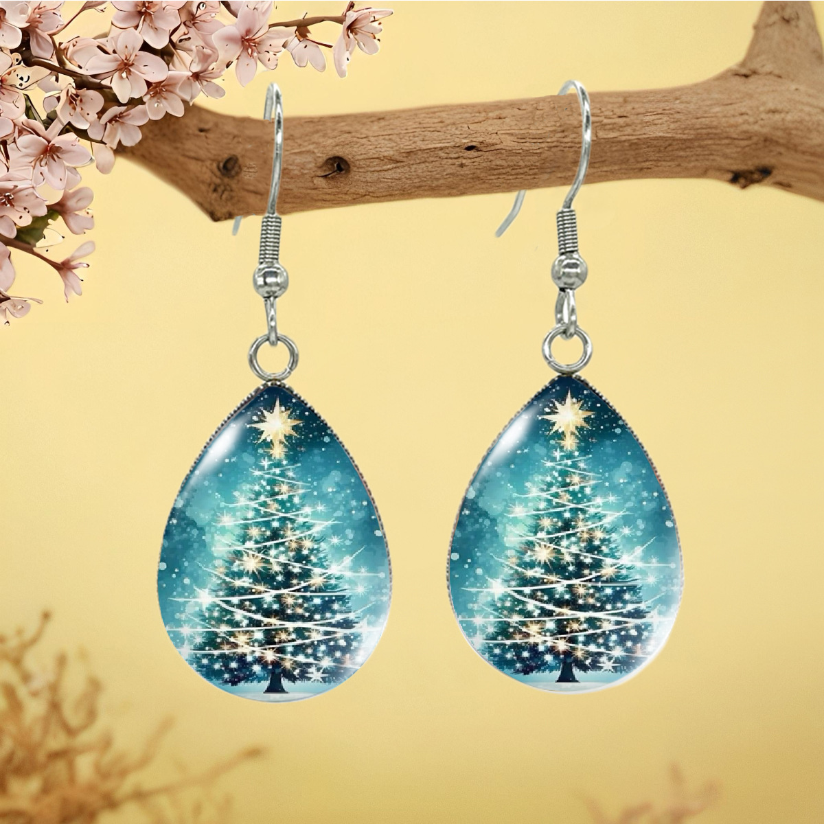 Cross-Border Santa Claus Lantern Time Gemstone Earrings Black Cat Knocking down Christmas Tree Funny Water Drop Glass Earrings