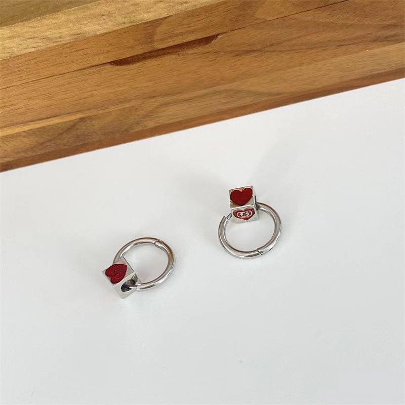 S925 Japanese and Korean Sweet and Cool Style Small Square Heart Metal Earrings for Women Niche Design Stylish Simple Versatile Earrings