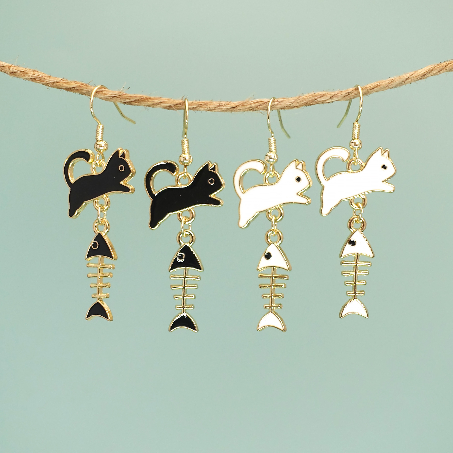 Cross-Border European and American Cat and Fish Bone Earrings, Fun, Creative, Cute, Personalized, Fashionable Ins Niche Earrings