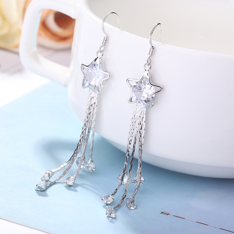 2021 Trendy Internet Celebrity Earrings for Women, Zircon Water Drop Long Earrings, Korean Style, Elegant and Versatile Stud Earrings with Star Diamonds