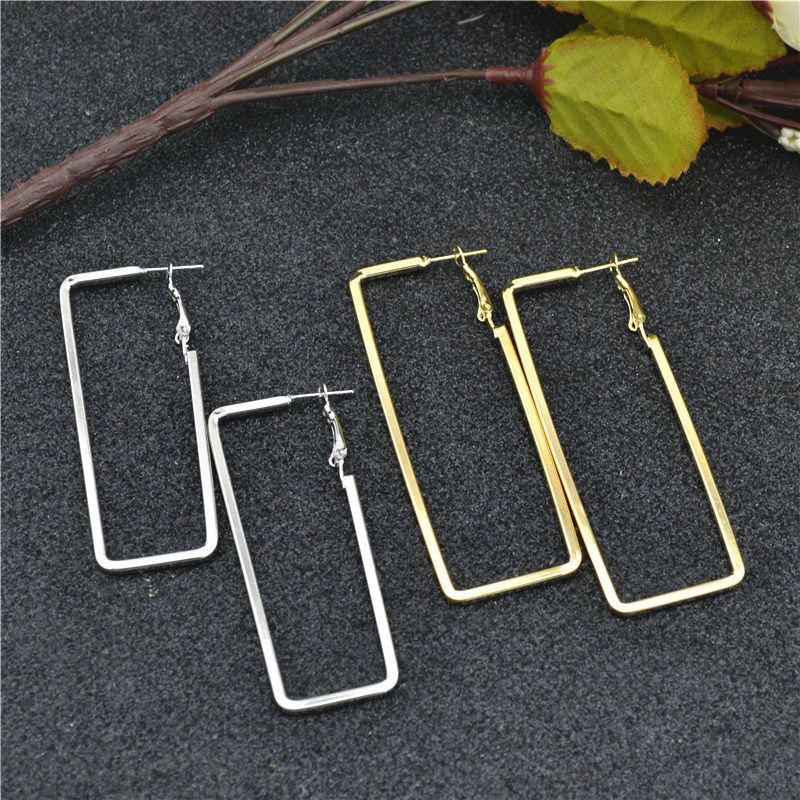 Fashion rectangular big earrings South Korea elegant Internet celebrity big circle earrings female summer big circle earrings personality