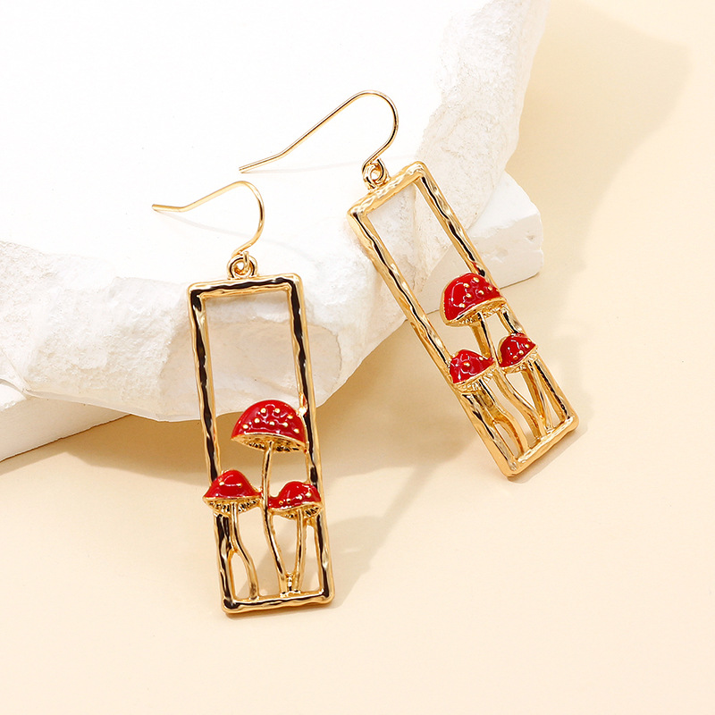 Zhong yi mushroom earrings women's personality fashion oil drop diamond South Korea simple temperament rectangular earrings jewelry wholesale