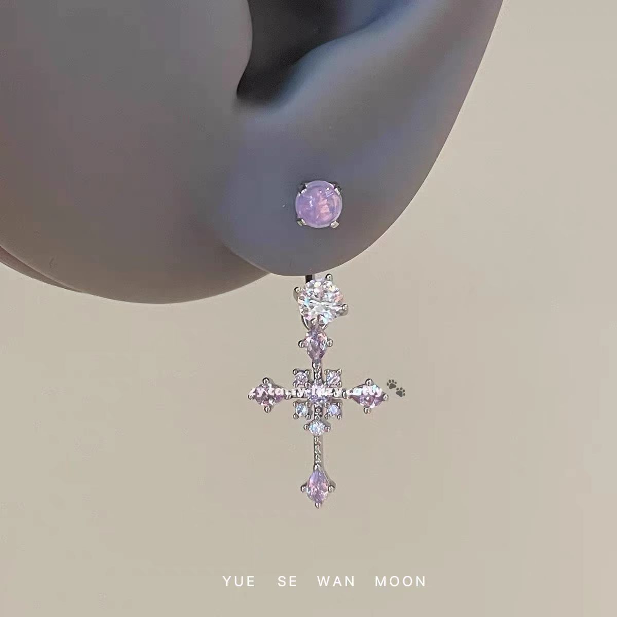 Ice-Clear Grape Cross Pendant Horseshoe Ring Versatile Ear Bone Stud Earrings Unique Earrings Niche Design