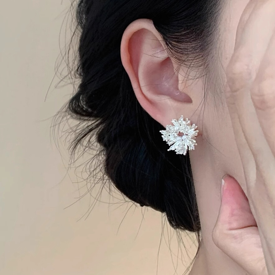 "Brilliant Fireworks" Zircon Snowflake Earrings Elegant Exquisite Super Flash Pearl Fireworks Earrings Light Luxury Romantic Earrings