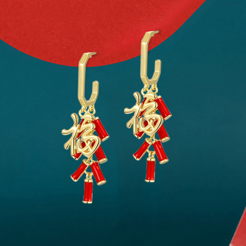 Chinese Style New Arrival Red New Year Festive Fortune Firecracker Earrings Women's Niche Design Sense Firecracker Tassel Earrings Trendy
