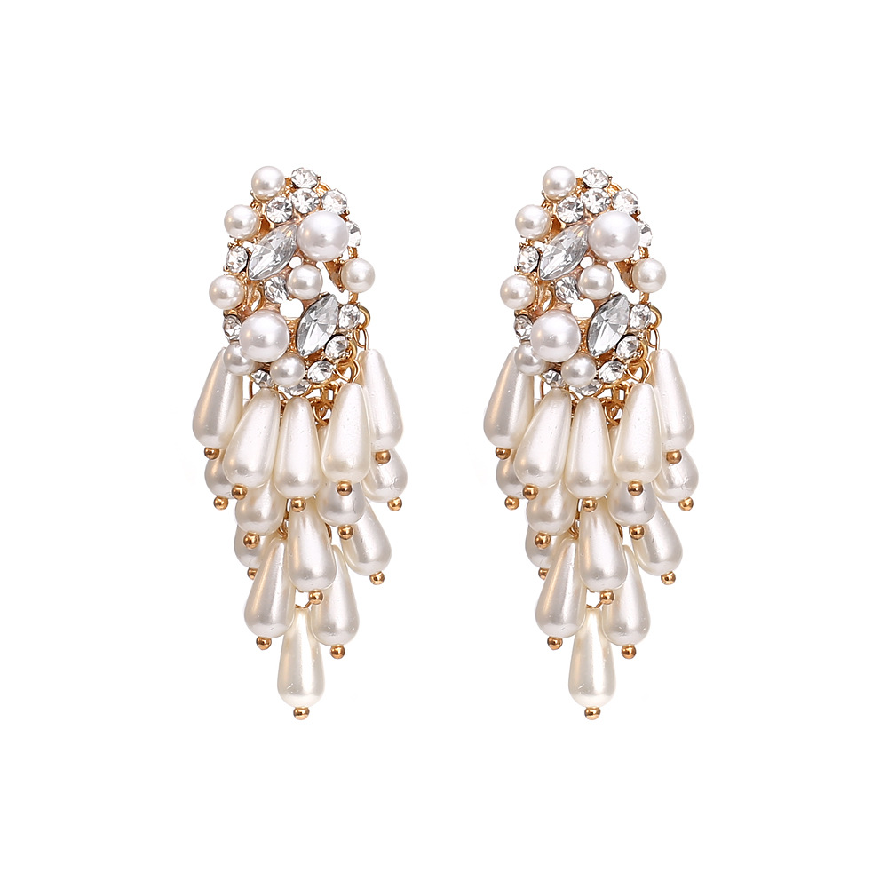 European and American exaggerated Pearl tassel earrings personalized alloy diamond earrings ZA earrings cross-border supply factory direct sales