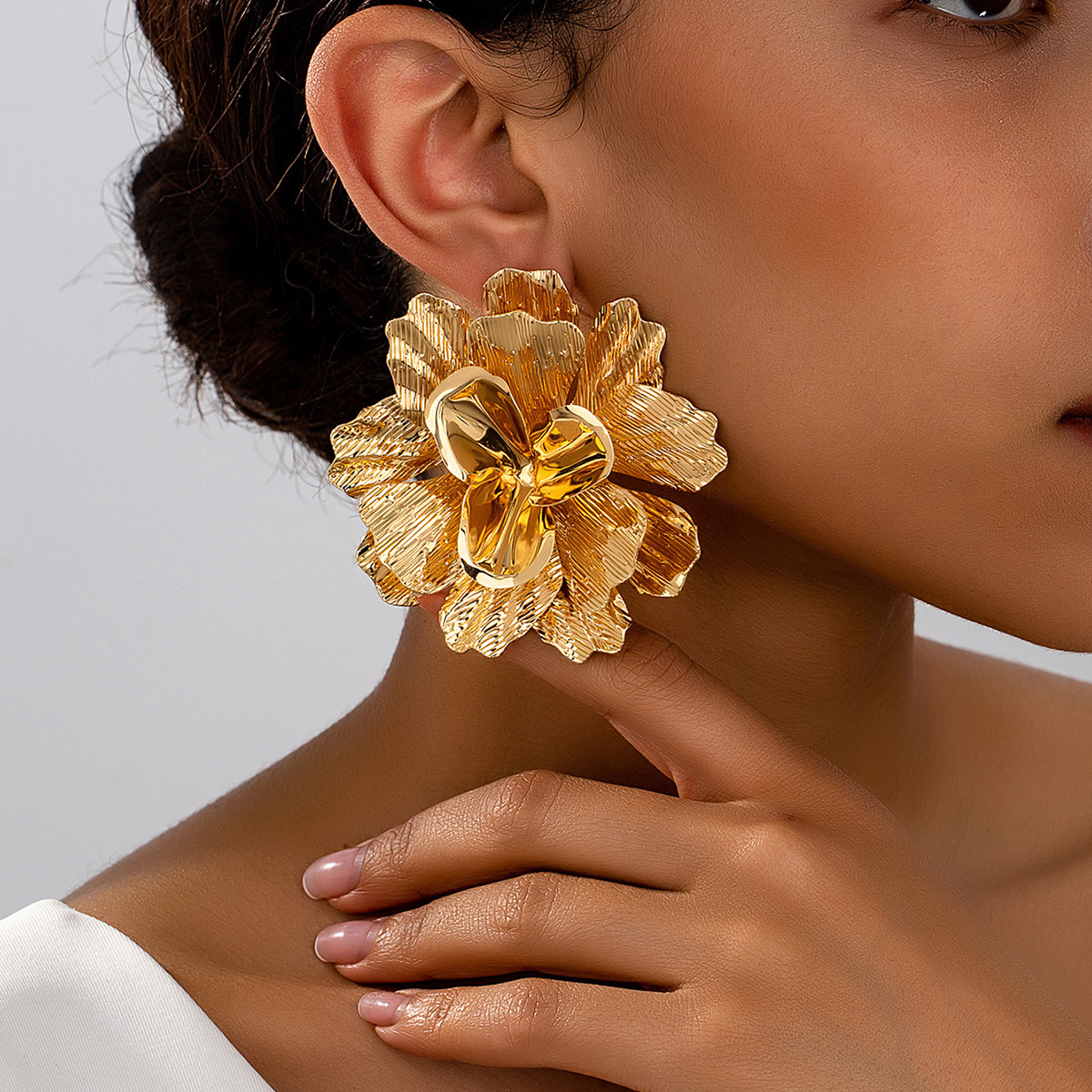 European and American Cross-Border Trendy New Three-Dimensional Multi-Layer Flower Earrings for Women, Unique Creative Temperament Exaggerated Street Style Earrings