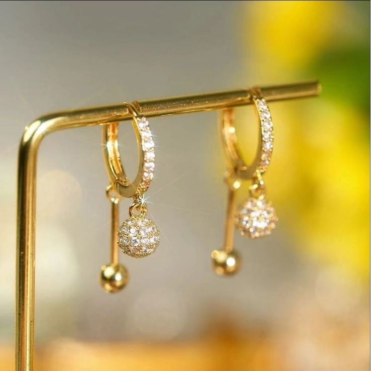 Earrings Made of Copper Alloy, High-End, Light Luxury, French Style, Unique, Double Ear Holes, Gold Color, Stylish, Versatile Accessories