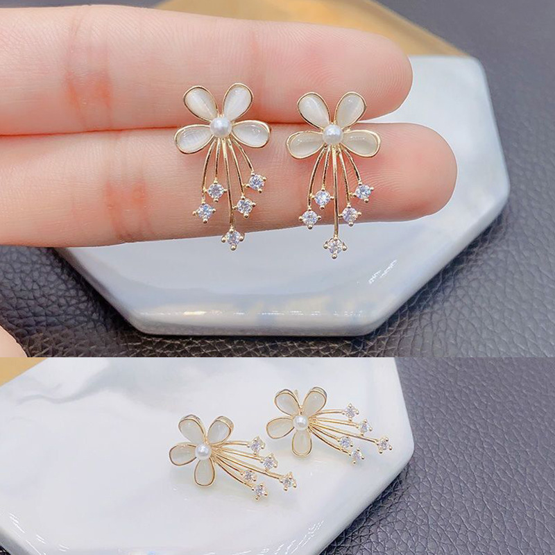 Flower Tassel Earrings Silver Needle New Fashionable Korean Elegant Internet Celebrity Fashion Spring Outing Small Drop Earrings for Women