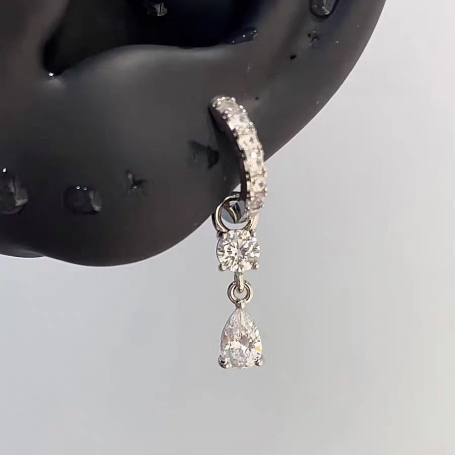 New Style Sparkling Zircon Water Drop Pendant Earrings for Double Ear Holes with Versatile Earrings for Women