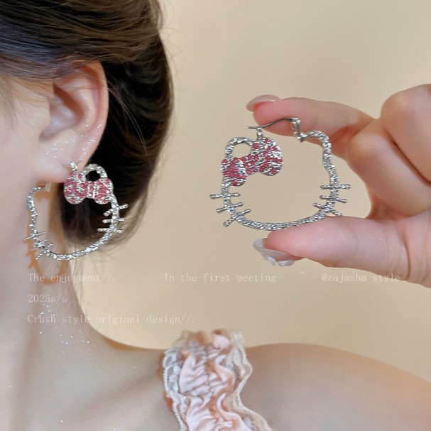 Sweet Girl~Super Glitter Pink Diamond Cut Out Kt Earrings for Women, Cute, Fashionable, High-End, Exaggerated Stylish Earrings and Earrings