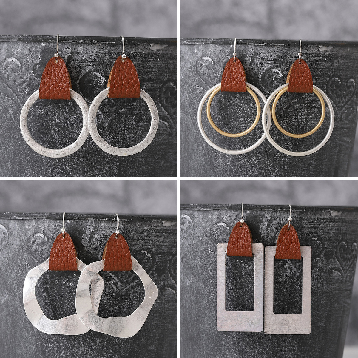 Cross-border New Bohemian Sand Silver Leather Earrings Handmade Minimalist Wind Ring Leather Earrings All-match Ear Jewelry