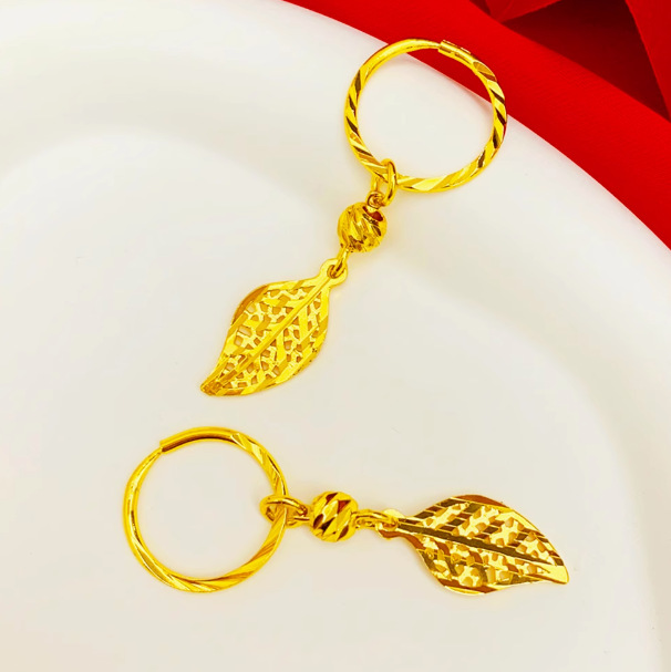 Vietnam Sand Gold Leaf Earrings One Leaf Wealth Earrings Copper Gold Plated Earrings Imitation Gold Jewelry Wholesale Jewelry