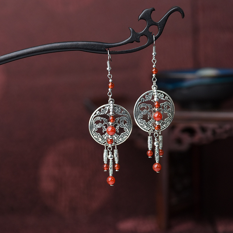 Yunnan ethnic style earrings exaggerated vintage tassel earrings ancient style earrings jewelry stall supply wholesale earrings
