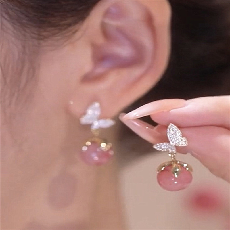 Online celebrity cross-border e-commerce popular European and American Middle East butterfly earrings ear pin S925 Fairy Butterfly Love flower pink cat eye