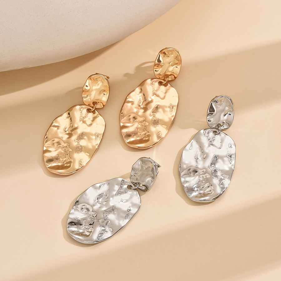 Geometric Irregular Hammered Pattern Ear Clip Women's Oval Exaggerated Clip Earrings European and American Cross-border Hot 2024