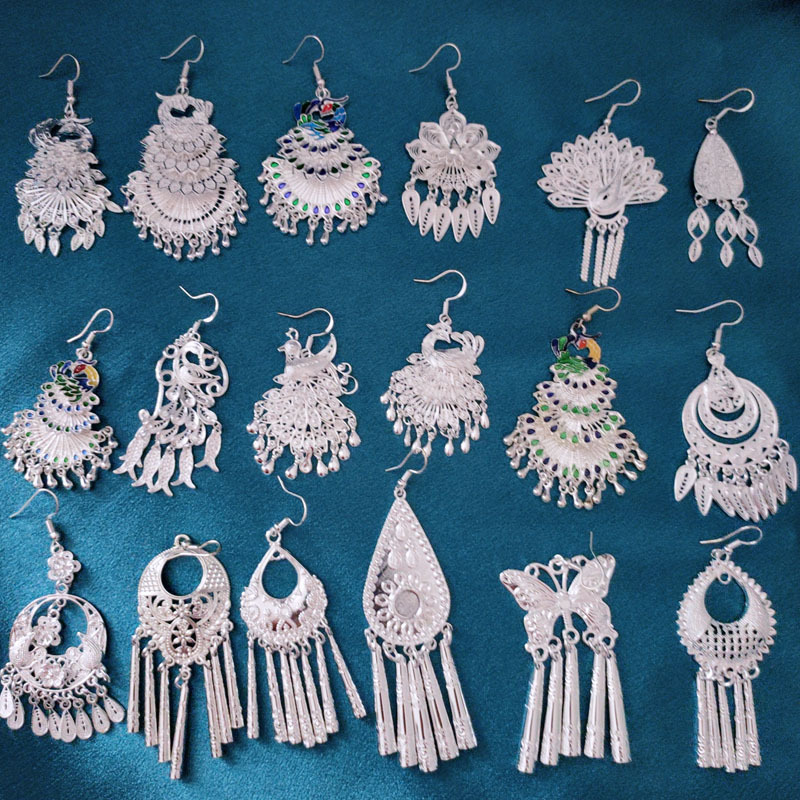 Collection No. 1-231 Ethnic Minority Peacock Earrings Scenic Earrings Ethnic Style Retro Miao Imitation Silver Earrings