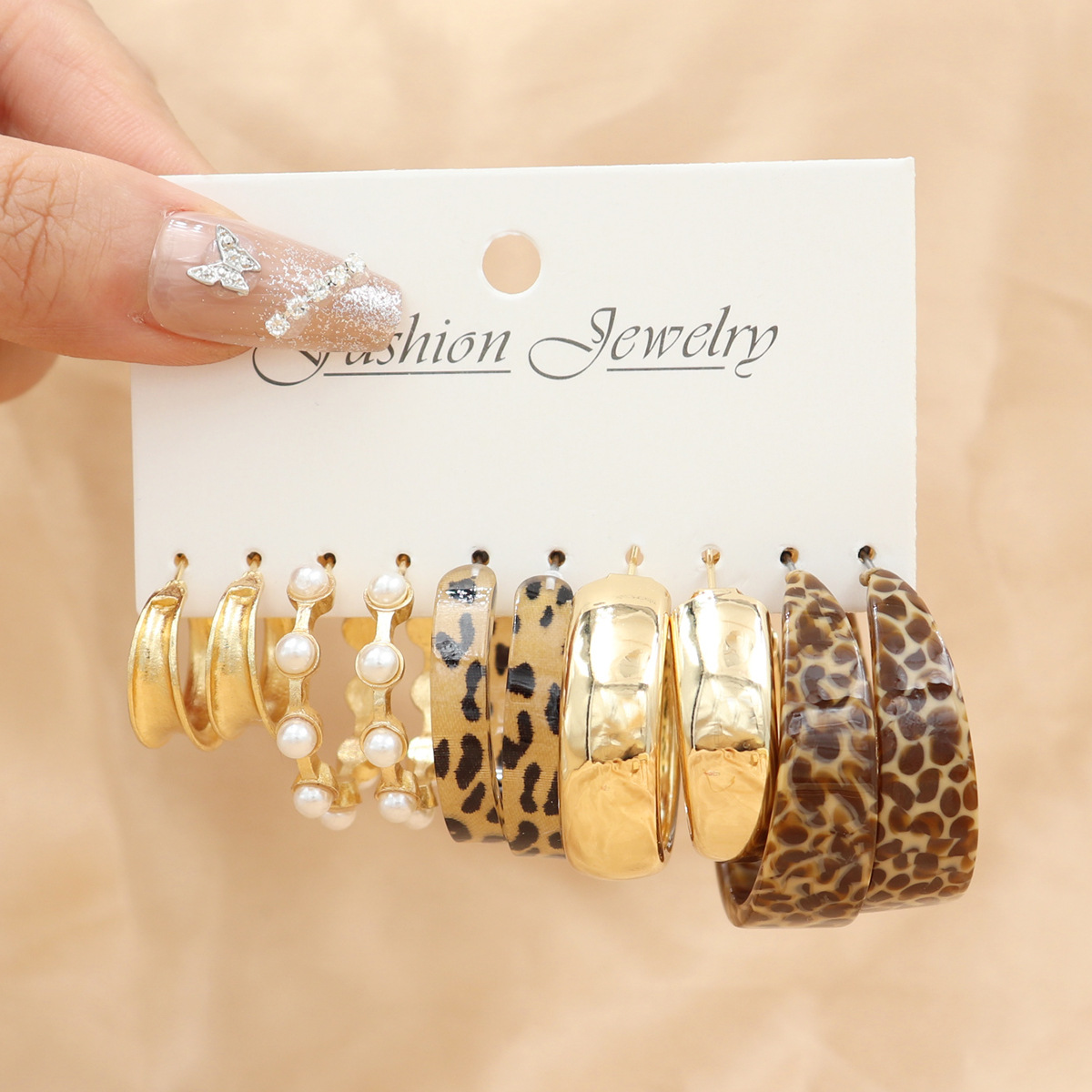 2025 New Creative Casual Temperament Women's Earring Set Golden Pearl Leopard Print Resin Earrings Women's 5-Piece Set